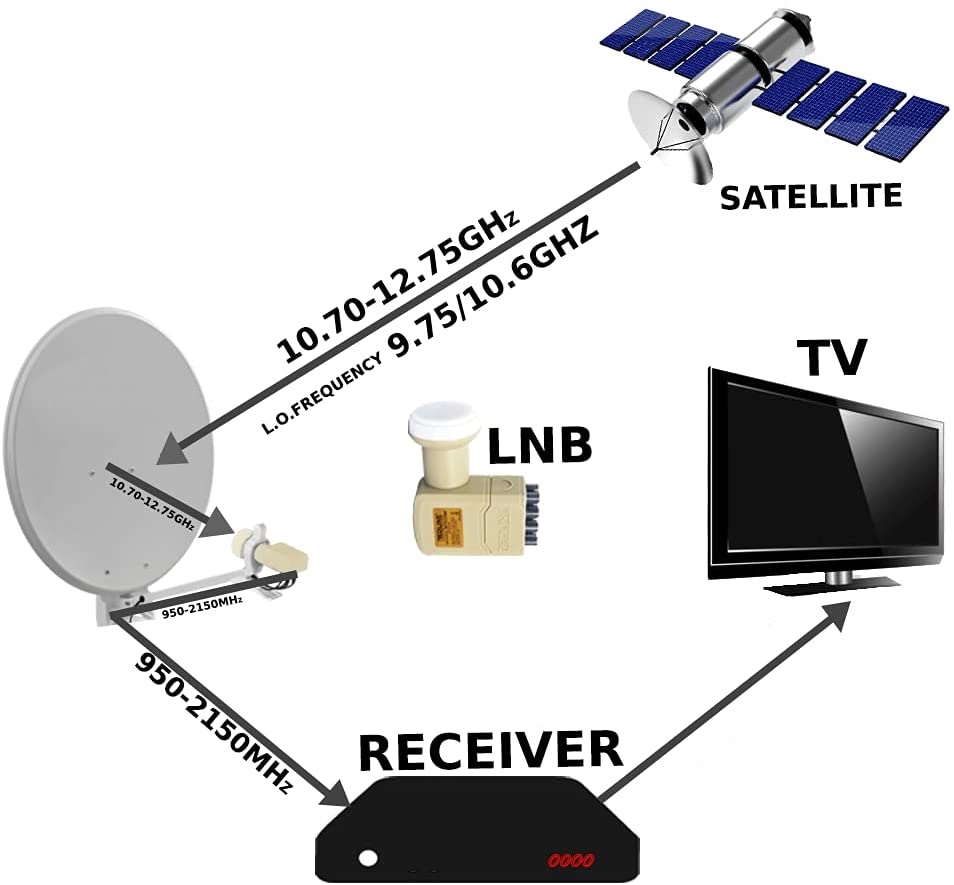 I canali satellitari trasmessi in banda Ku (10,9-12,75 GHz) utilizzano due diverse polarità (verticale e orizzontale) per poter essere ricevuti e convertiti dall’LNB, distribuiti lungo il cavo coassiale e sintonizzati dal decoder/Tv.