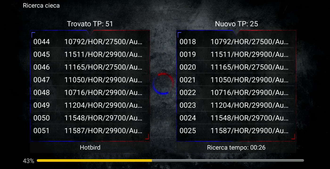 Il vantaggio della Blind Scan è quello di trovare automaticamente anche i transponder di nuova attivazione, quelli che hanno cambiato parametri (FEC, symbol rate, ecc.) oppure non presenti nel database del decoder, senza bisogno di aggiungerli manualmente dal menu OSD.