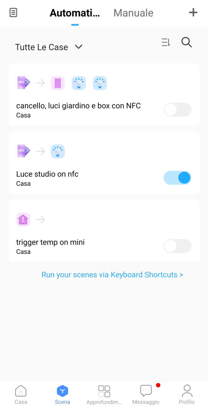Tutte le app di domotica utilizzate per configurare e controllare i dispositivi smart come luci, prese, switch e molto altro permettono di creare routine e scenari personalizzati utilizzando i dispositivi registrati nell’applicazione.