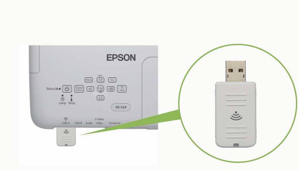 Per la connessione wireless di dispositivi smartphone e tablet sono disponibili ricevitori per i diversi proiettori da collegare alla presa USB e utilizzando app sviluppate per lo scopo (Fig. 4). Epson iProjection è un’intuitiva app che consente la proiezione wireless da dispositivi mobile iOS e Android.