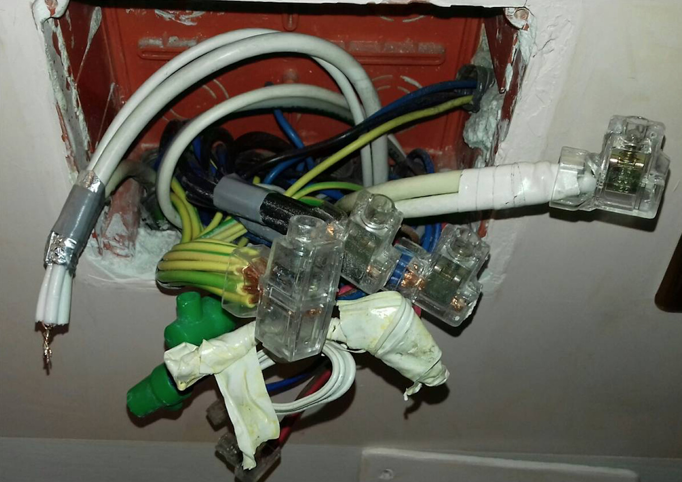 Qui sotto sono rappresentati alcuni casi di giunzioni “maldestre” del cavo e di connessioni improprie realizzate da persone che non conoscono gli effetti negativi che questo “maltrattamento” dei cavi hanno sulla funzionalità dell’impianto e sulla qualità del segnale TV.