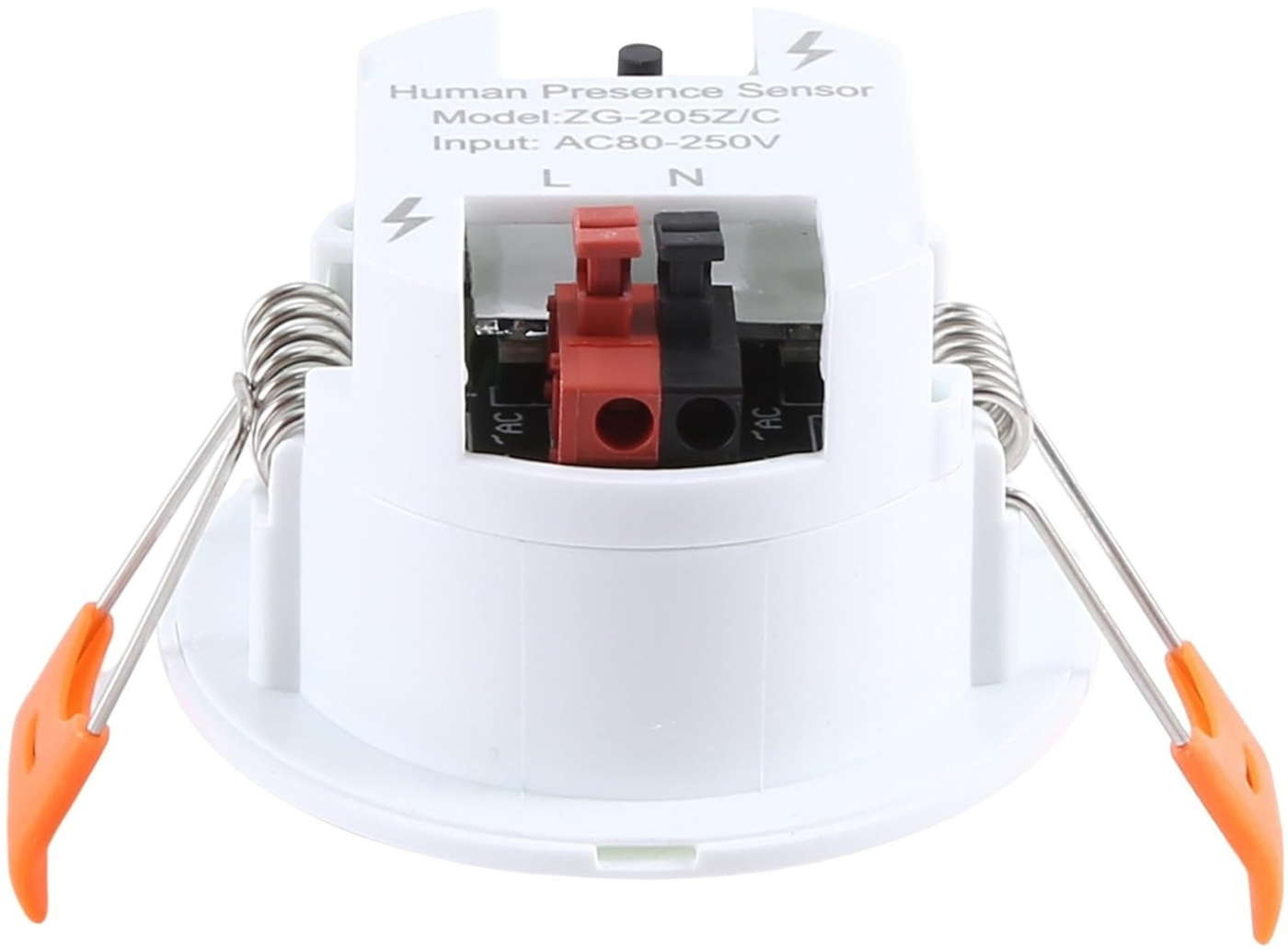 A differenza di altri sensori di presenza si alimenta direttamente dalla rete elettrica 220Vac (morsetto a molla dietro al sensore – fase/neutro) e si controlla tramite hub Zigbee (opzionale) dalla app Tuya Smart.