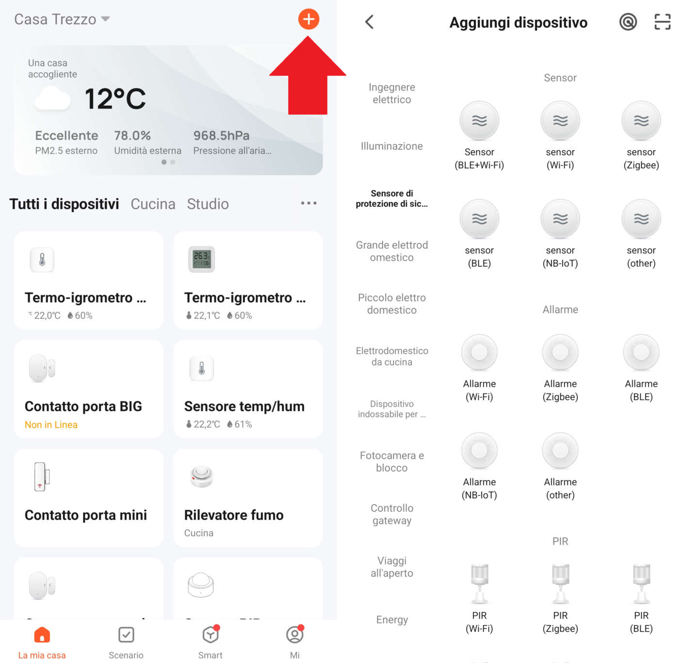 Se il sensore utilizza sistemi di connessione alternativi al Wi-Fi, come ad esempio lo Zigbee, dovete prima registrare sulla app il gateway/hub e poi il sensore sul gateway.