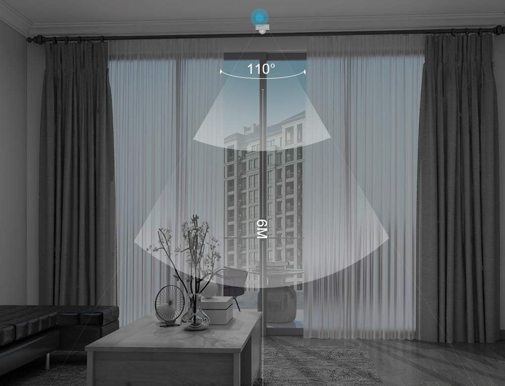Si collega a qualsiasi hub ZigBee 3.0, è compatibile con telecamere IP smart, Alexa e Google Assistant. Offre una copertura volumetrica massima di 30-40 mq con una distanza fino a 6 metri e apertura fascio a 110°.
