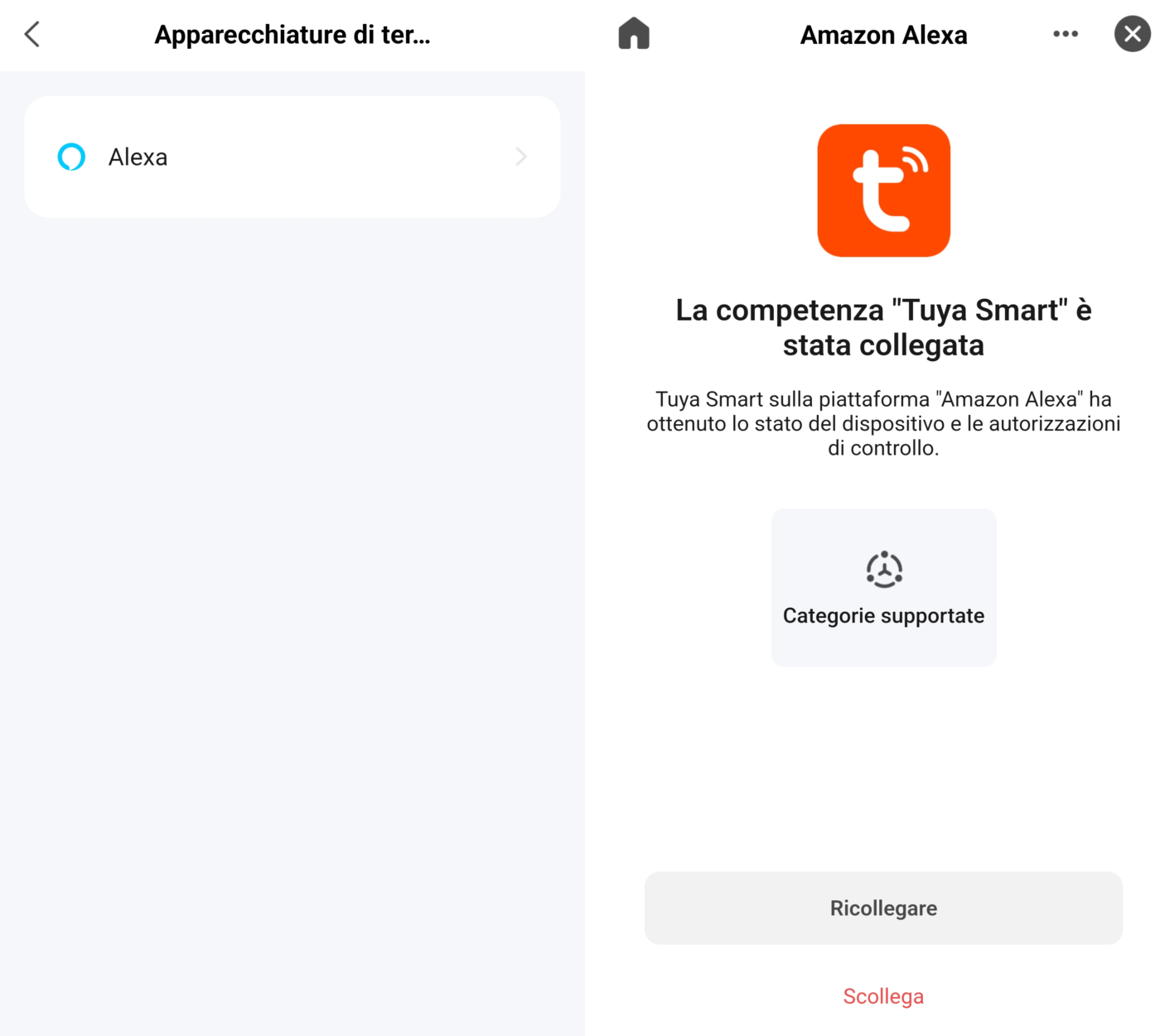 Terminata l’acquisizione del sensore, se avete già installato sullo smartphone la app Alexa e la skill della app utilizzata per la registrazione (es.: Tuya Smart) riceverete una notifica di aggiunta automatica ad Alexa per controllare il sensore con la voce, inserirlo nelle routine, ecc.