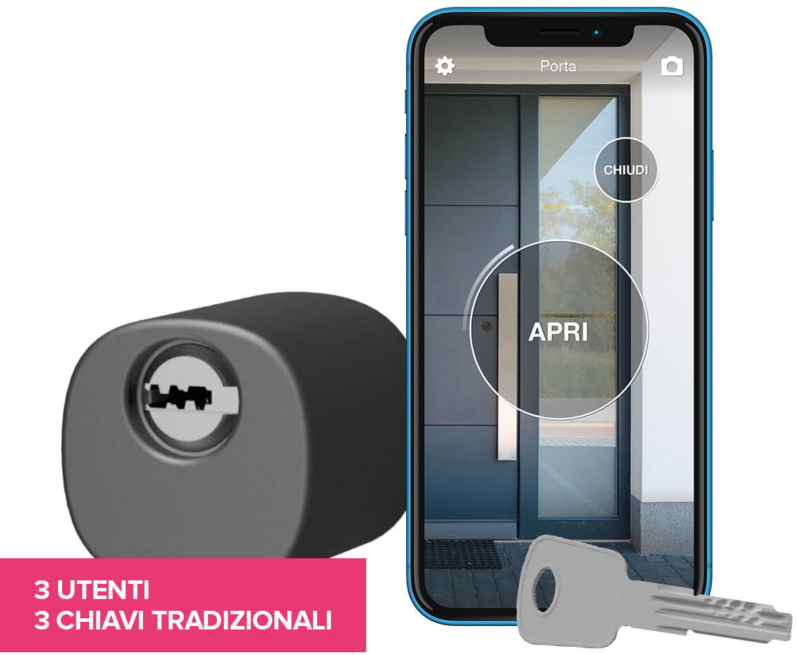 Si installa facilmente e rapidamente senza modificare la porta grazie alla guida passo passo su app, è compatibile con numerose porte con cilindro europeo standard (clicca qui per verificare la compatibilità), è protetta dai più avanzati algoritmi di crittografia ed utilizza cilindri e chiavi ad alta sicurezza. Si alimenta con 2 batterie CR2 con durata media di 12 mesi.