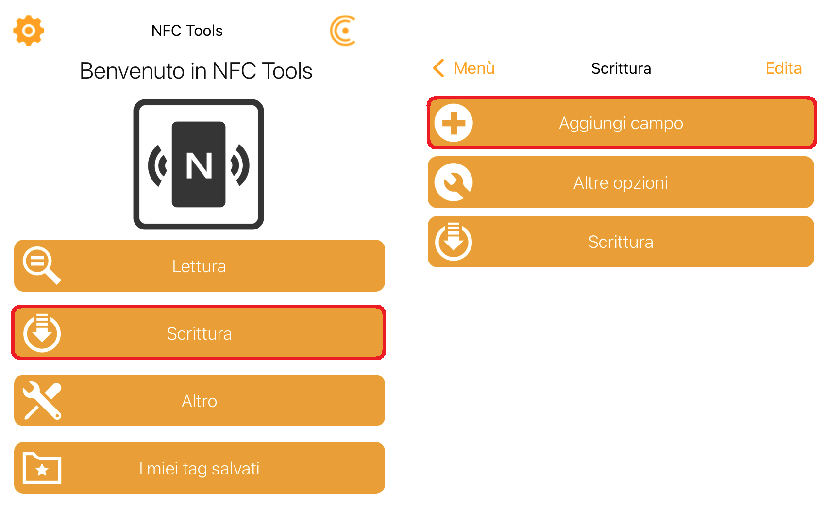- Tornate al menu principale, cliccate su Scrittura e poi su Aggiungi campo;