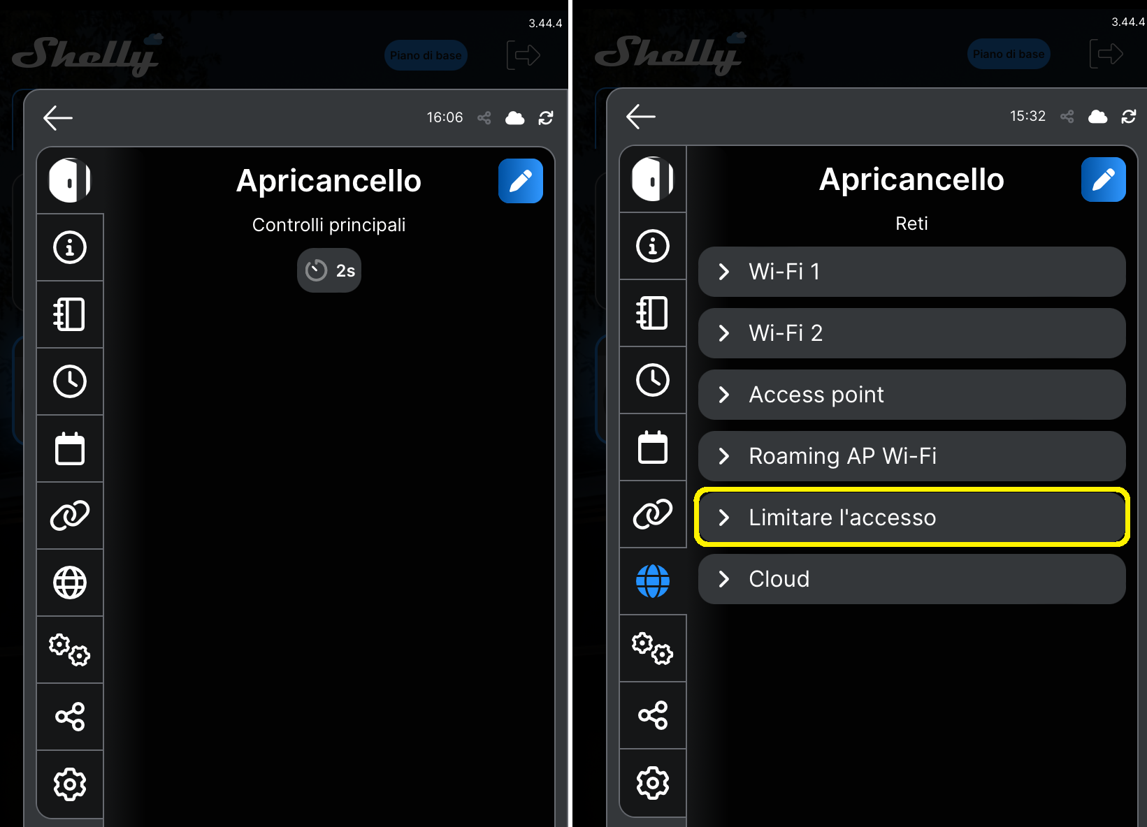 - Cliccate sull’icona Globo a sinistra (Reti) e poi su Limitare l’accesso;