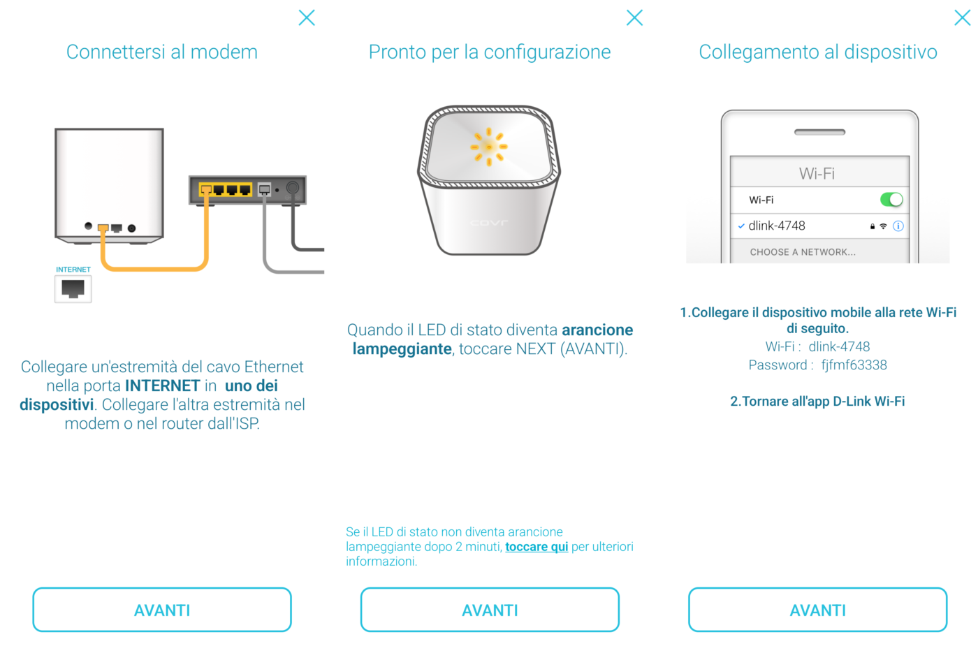 Dopo aver scaricato da Google Play (Android) o da App Store (Apple) l’applicazione indicata dal produttore del sistema Mesh (se necessaria) si procede con il rilevamento dell’unità master (anche tramite QR Code) e l’accoppiamento delle unità slave seguendo le istruzioni sullo schermo dello smartphone o del tablet. In questa fase è consigliabile che tutte le unità del sistema siano vicine tra loro.
