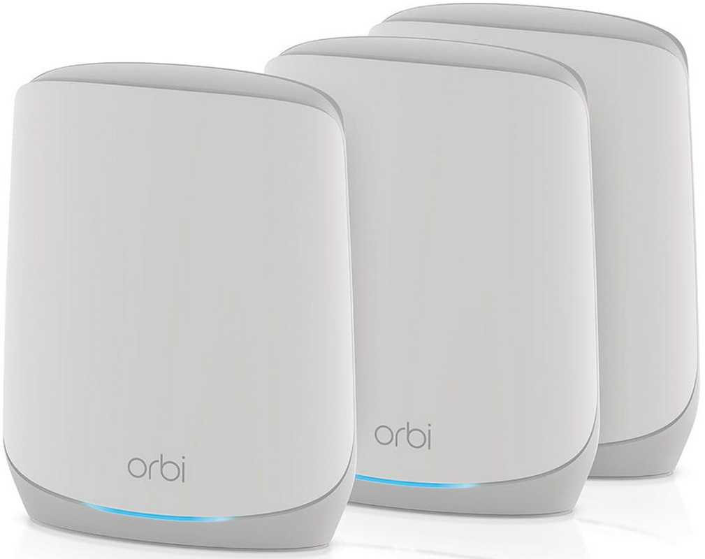 Kit Orbi ad alte prestazioni composto da tre unità (1 router e 2 satelliti) con tecnologia Wi-Fi 6 (Tri-Band Mesh, MU-MIMO, Beamforming) per una velocità massima di 5400 Gbps. Può gestire fino a 75 dispositivi collegati contemporaneamente su una superficie complessiva di 875 mq.