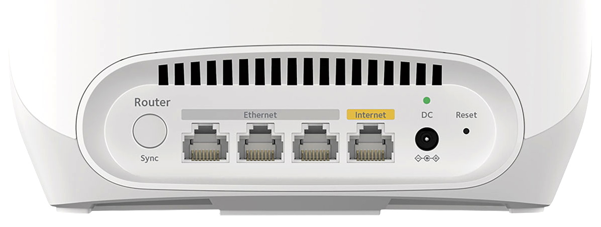 Include una connessione backhaul dedicata per ottimizzare il collegamento router-satelliti senza influire sulle prestazioni dei client, 7 porte LAN gigabit (3+2+2) e una WAN (sull’unità router) per il collegamento al modem-router già installato e dei dispositivi senza Wi-Fi (ma con porta Ethernet).