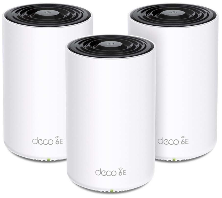Kit Mesh TP-Link di fascia alta composto da 3 unità Wi-Fi 6E con 4 antenne ad alta efficienza per una copertura fino a 670 mq, collegamenti stabili e ad alta velocità senza interruzioni né buffering grazie alla rete unificata con Mesh AI-Driven (gestione Mesh con intelligenza artificiale).