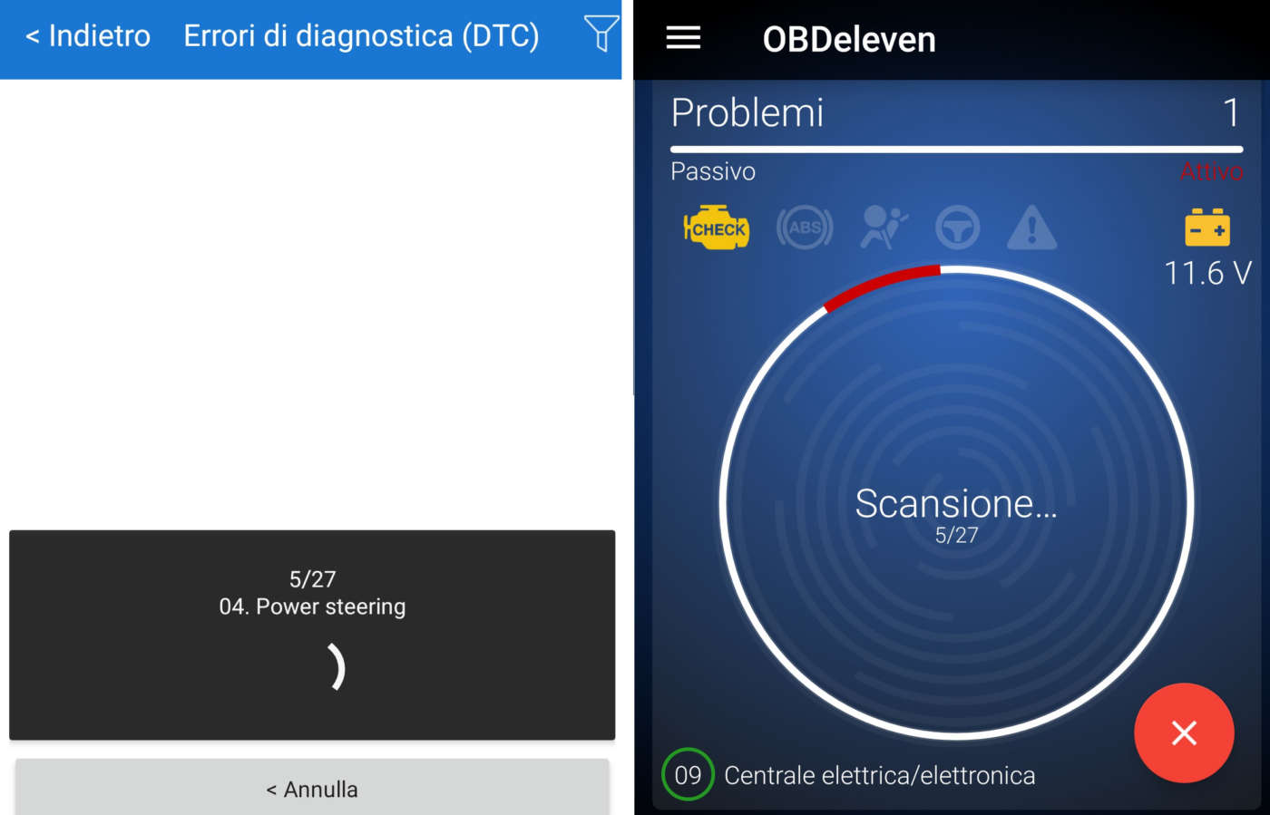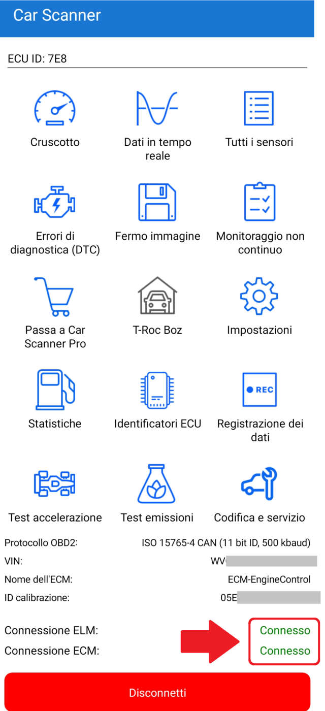 Stabilita la connessione tra la app e il dongle OBD2 potete procedere con la scansione diagnostica delle centraline e, al termine, consultare gli errori.