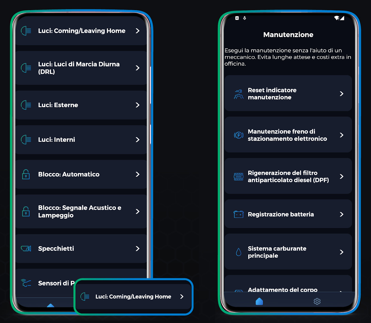 Alcune app generiche come Car Scanner e quelle dedicate come OBD Eleven e Carista permettono di modificare alcune voci delle centraline dell’auto e riconfigurarle con una nuova parametrizzazione (dataset) allo scopo di abilitare funzioni già presenti ma non attive.