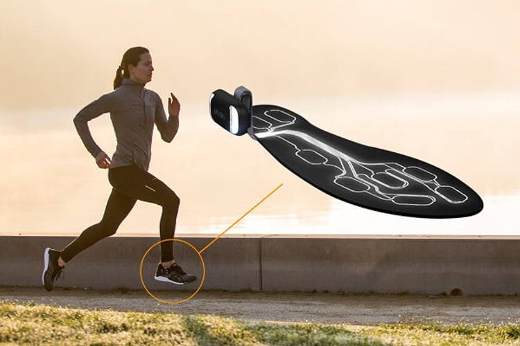Il sistema si compone di una coppia di solette spesse meno di 2 mm con integrati i sensori del caso, abbinate a un altro sensore esterno da applicare alla caviglia, non moto diverso da quelli utilizzati per rilevare i tempi durante tante manifestazioni.