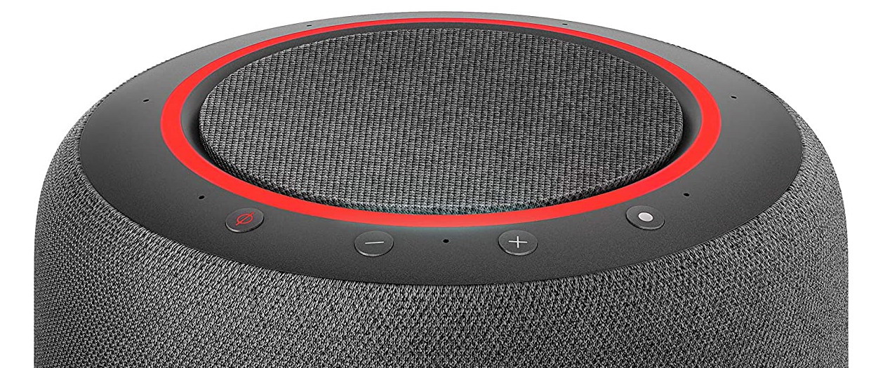 I comandi sono sempre posizionati in alto direttamente sul rivestimento in tessuto mentre l’anello luminoso di Alexa si trova alla base.