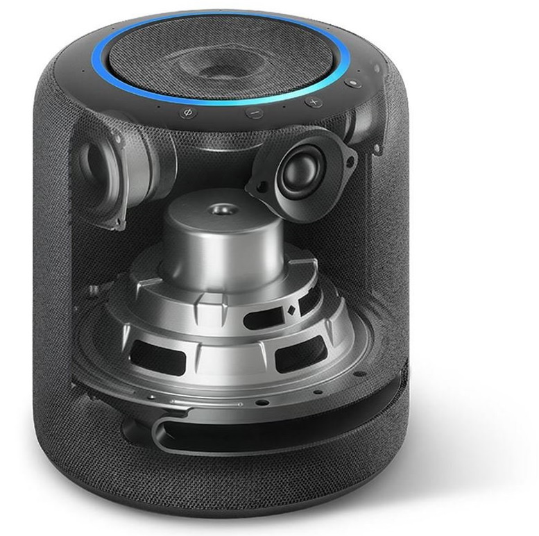 L’Echo Studio è uno smart speaker espressamente studiato per l’ascolto stereofonico della musica in alta qualità grazie alla configurazione a tre vie con 1 tweeter da 25 mm, 2 midrange da 51 mm e 1 woofer da 133 mm con sistema Bass Reflex che amplifica i toni bassi. La potenza totale dichiarata è di ben 330 watt.