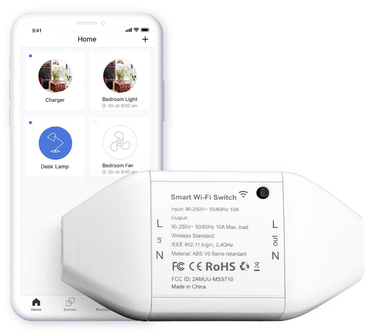 Tutti gli smart switch Meross utilizzano la rete Wi-Fi per collegarsi al modem/router di casa e permetterne il controllo da smartphone e comandi vocali, sia a casa che fuori grazie al cloud.