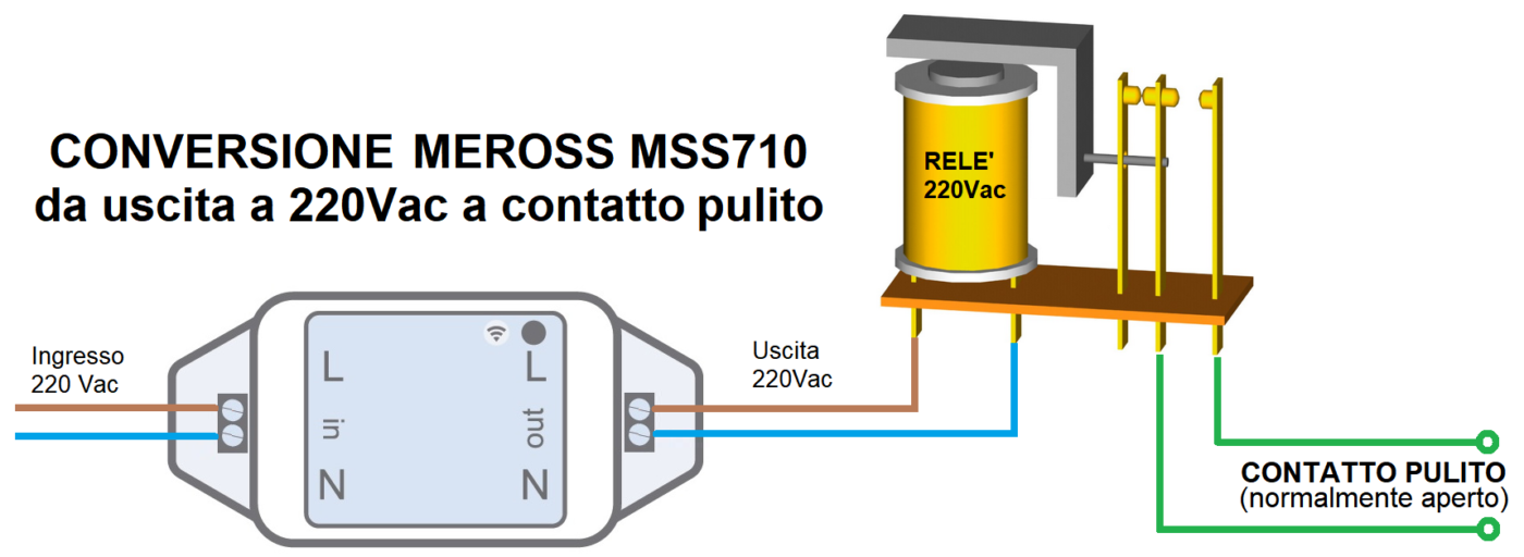 Se avete un minimo di esperienza in campo elettrico ed elettronico potete collegare in uscita un relé da 220Vca come questo ed ottenere così uno switch con contatti “puliti” normalmente aperti (N.O. o N.A.) o chiusi (N.C.).