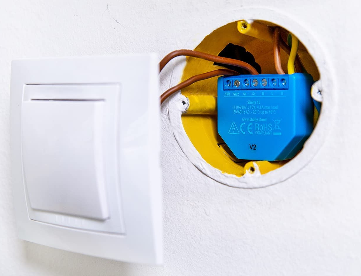 Anche gli switch Shelly non richiedono hub esterni (ad esempio Zigbee) e occupano pochissimo spazio così da essere nascosti facilmente nelle scatole a muro o di derivazione.