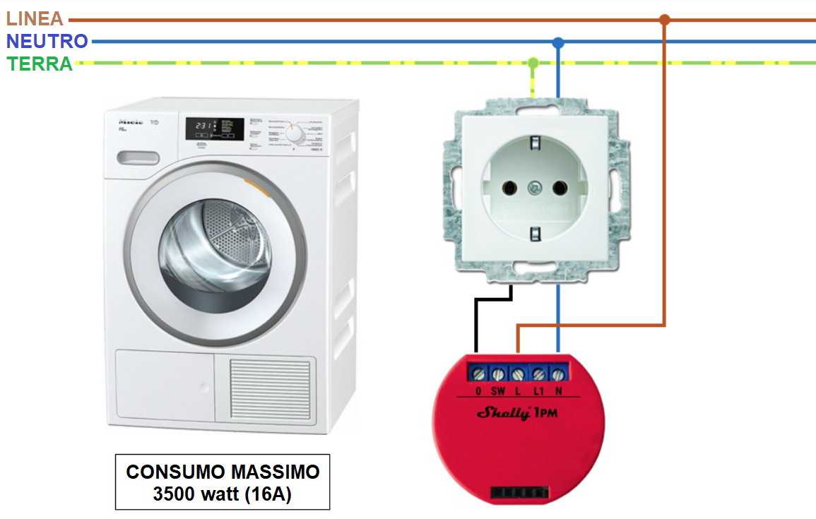 Può essere collegato dietro alla presa 220Vac destinata ad alimentare forni, lavatrici e lavastoviglie, inserito nella ciabatta dove si collega la stufetta elettrica oppure il climatizzatore portatile. L’unico vincolo è che l’apparecchio abbia un assorbimento non superiore a 3500 watt.
