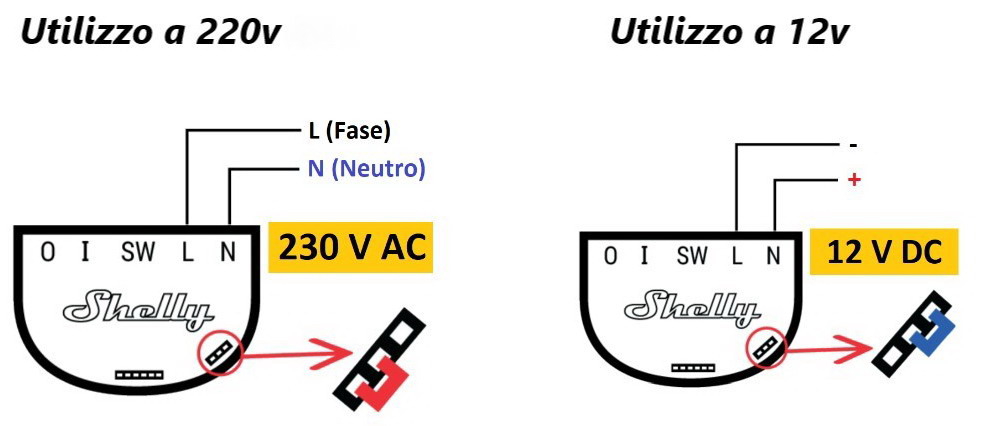 Supporta la doppia alimentazione in alta o bassa tensione (220Vac o 12Vcc) semplicemente spostando il ponticello nella parte superiore, così da poterlo utilizzare anche per l’automazione di strisce led e sui mezzi mobili come camper, caravan, barche e auto.