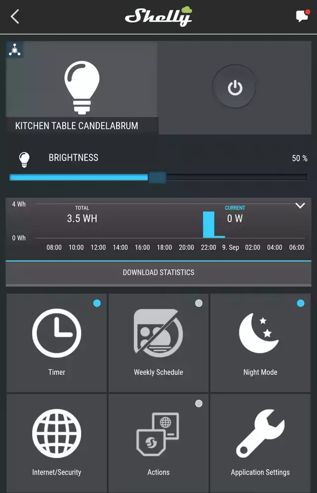 La sua funzione principale è quella di accendere, spegnere e regolare la luminosità di lampadari, applique, piantane e altri punti luce, sia in manuale (app, comandi vocali o altri dispositivi che supportano i protocolli http, UDP, MQTT, ecc.) che in automatico in base agli orari di alba e tramonto, ai timer personalizzati, ecc.