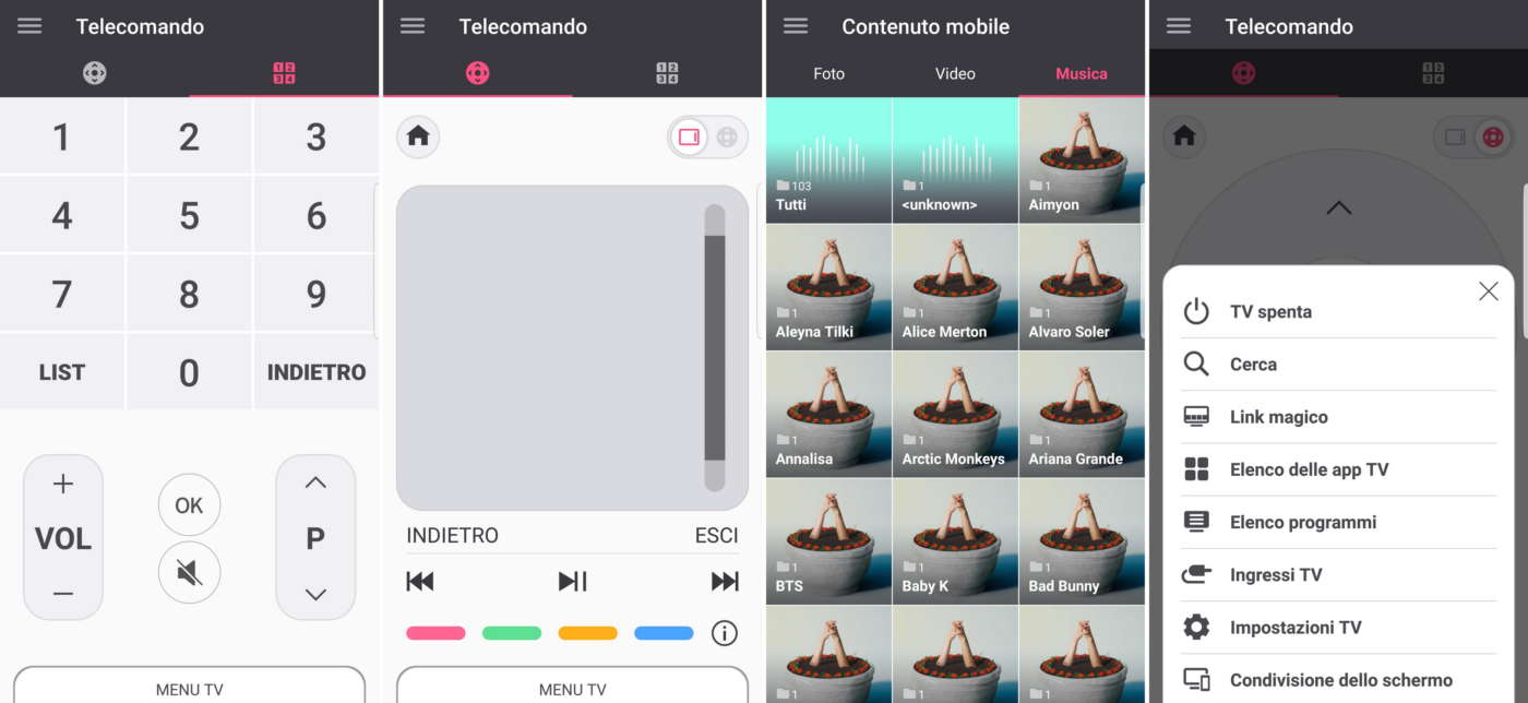 Gli Smart TV permettono anche di utilizzare lo smartphone per inviare foto, video e contenuti musicali (mirroring, Miracast, AirPlay2) senza bisogno di usare chiavette USB o servizi cloud, sfruttare lo schermo touch come telecomando virtuale (semplificato o completo) al posto di quello “fisico” originale, trasferire sullo schermo televisivo le app dello smartphone (es.: Facebook, TikTok, Chrome, ecc.).