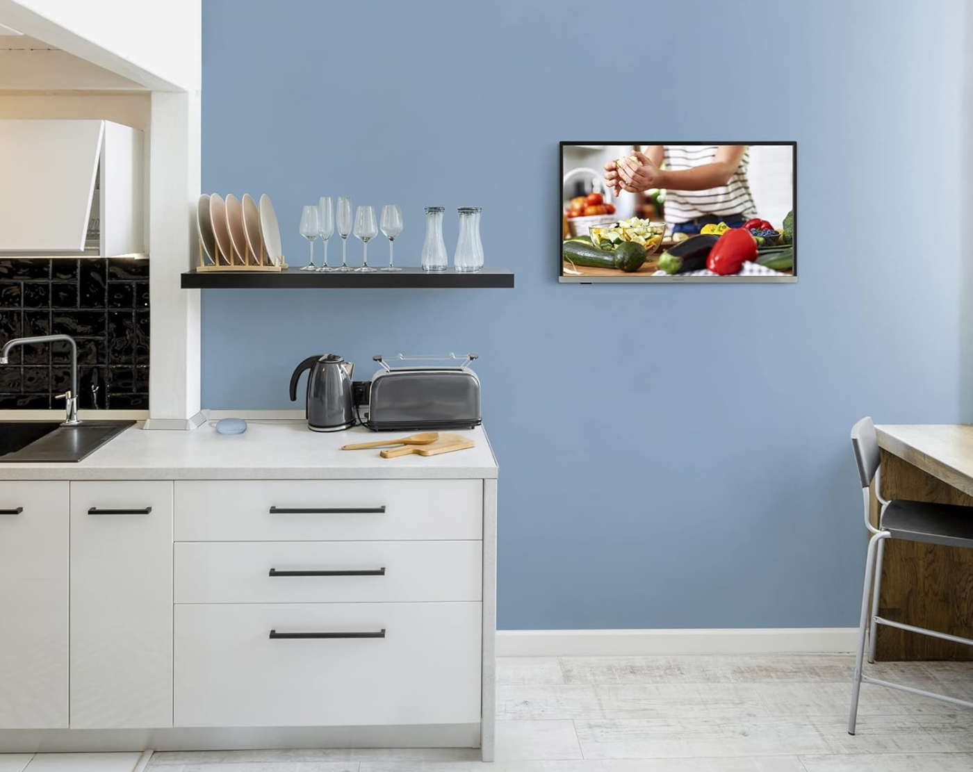 Tenuto conto della distanza di visione e dell’uso del Tv della cucina (solitamente limitato ai pasti) la differenza tra HD e Full HD è spesso impercettibile. Se, invece, il televisore si trova molto vicino (al massimo 1 metro) al punto di visione è preferibile scegliere un modello Full HD.