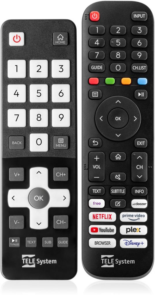 Oltre al telecomando completo, spesso scomodo da utilizzare per via dei tasti minuscoli, alcuni Smart TV sono dotati di un telecomando semplificato con pochi tasti di grandi dimensioni (volume, canale, SAT/DTT, menu, on/standby, mute, ecc.) molto comodo per bambini e anziani.