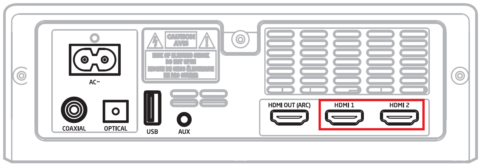 Eventuali altre porte HDMI IN sono dedicate ai dispositivi audio-video come decoder, box, DVD e Blu-ray non collegati direttamente al Tv per mancanza di porte HDMI libere. Dal momento che le HDMI principali del Tv e della soundbar supportano il trasferimento audio/video bidirezionale (se compatibili con la funzione ARC/eARC), i segnali di queste sorgenti vengono indirizzati automaticamente al televisore che a sua volta ritrasmette l’audio alla soundbar.