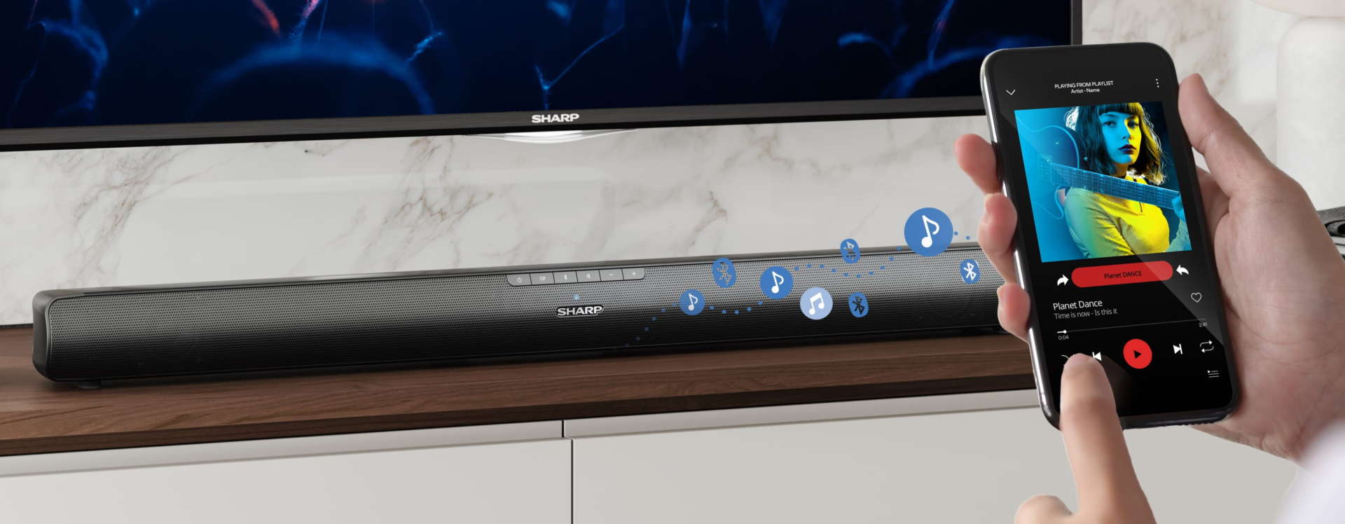 Tutte le soundbar sono dotate di connessione Bluetooth per il collegamento audio con il televisore (in alternativa a HDMI e Toslink rinunciando però al surround) e lo streaming dei contenuti da smartphone e tablet (es.: Spotify, Amazon Music, YouTube, ecc.).