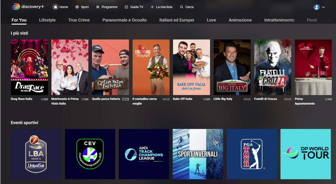 È disponibile anche il piano Gratuito che richiede solo la creazione di un account per l’accesso ad alcuni canali live streaming (Warner TV, Real Time, NOVE, DMAX, Food Network, HGTV, Motor Trend, Giallo, K2 e Frisbee) e ai contenuti on demand contrassegnati come “Free”.