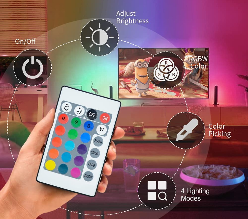 Queste strip sono perfette anche per illuminare sotto-pensili, scrivanie, ripiani, mobili, teche, televisori (il famoso effetto “Ambilight” degli Smart TV Philips) e qualsiasi altro oggetto perché si possono tagliare su misura senza pregiudicare il loro funzionamento.