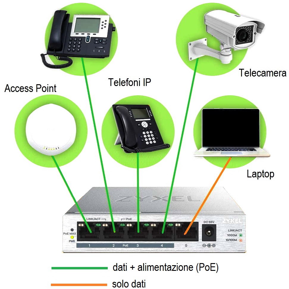 Switch PoE: dati e alimentazione sullo stesso cavo