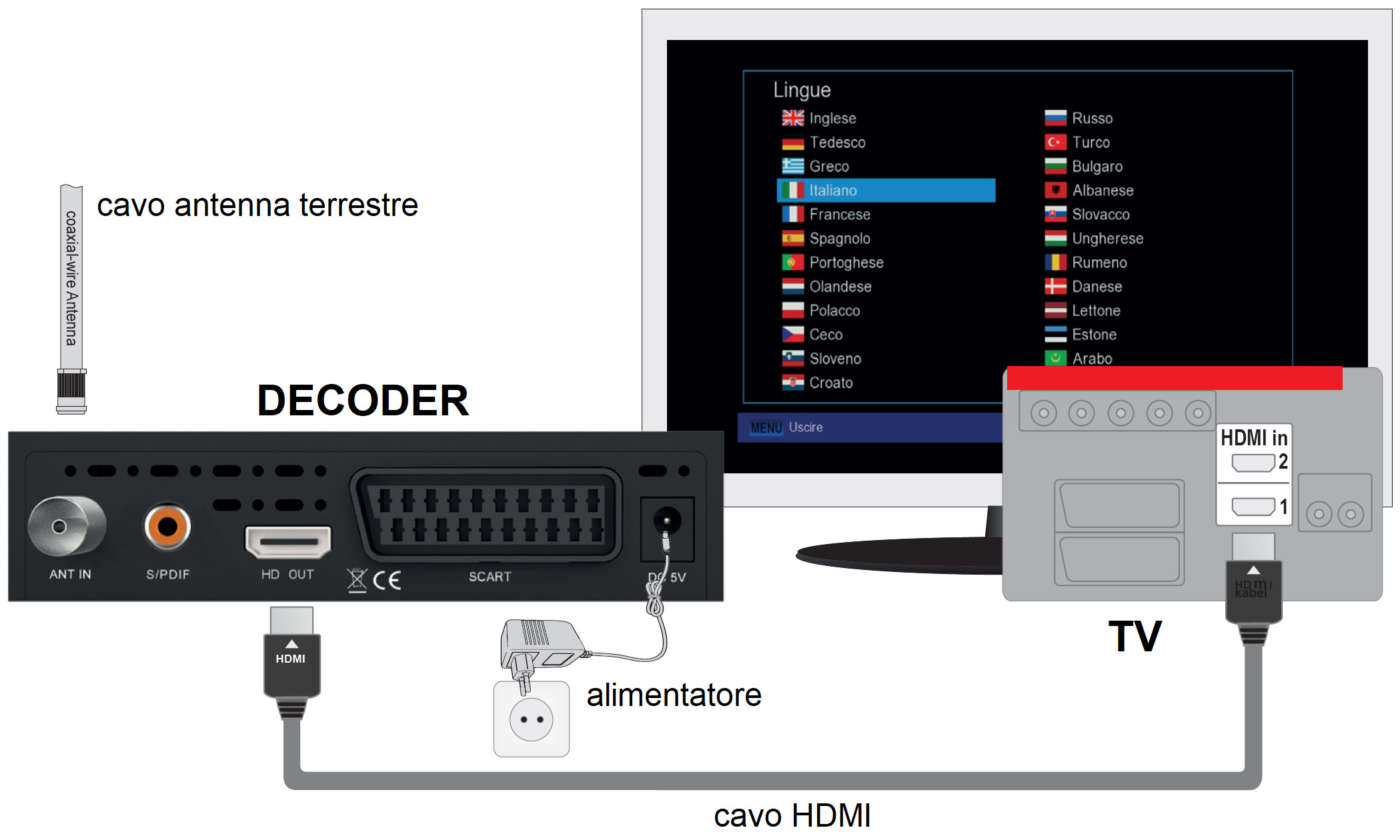 Assolutamente no. Chiunque può collegare il decoder al Tv, all’antenna terrestre e configurarlo in pochi minuti. Basta procurarsi un cavo HDMI (spesso già in dotazione) e collegarlo tra il televisore (porta HDMI1, HDMI2 o HDMI3) e il decoder.