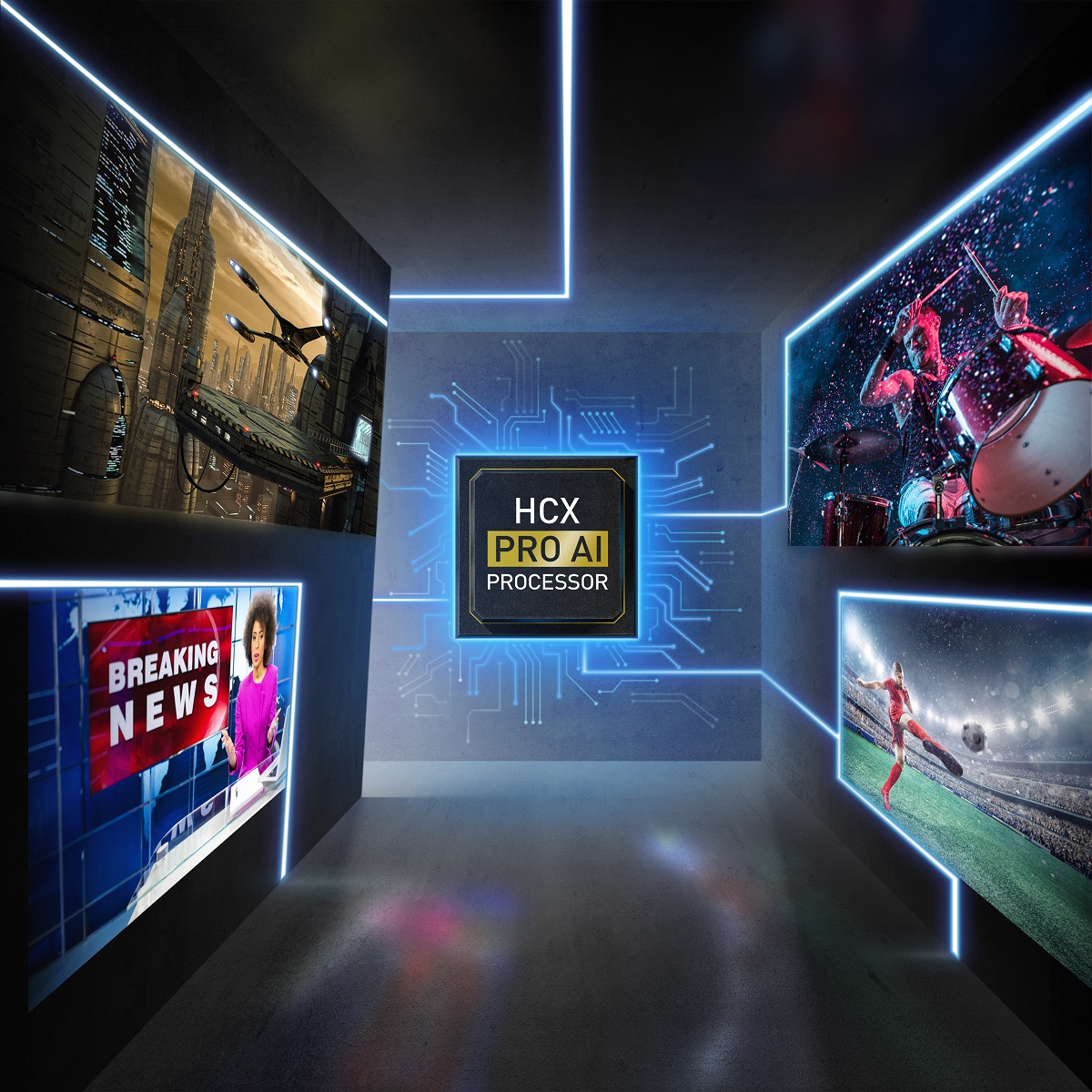 Grazie all’intelligenza artificiale il processore è capace di individuare automaticamente la tipologia di contenuto (film, evento sportivo, documentario) ed anche l’elemento chiave della scena (es.: attore in primo piano o pallone da calcio sul campo) per applicare tutta una serie di correttivi così da ottimizzare la visione agendo su contrasto, luminosità, colore, dettaglio, frequenza dei fotogrammi (frame rate) ed altri parametri. Le correzioni avvengono in tempo reale, con una precisione e una naturalezza impossibili da ottenere solo pochi anni fa con i processori di vecchia generazione.