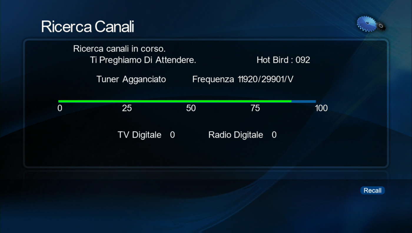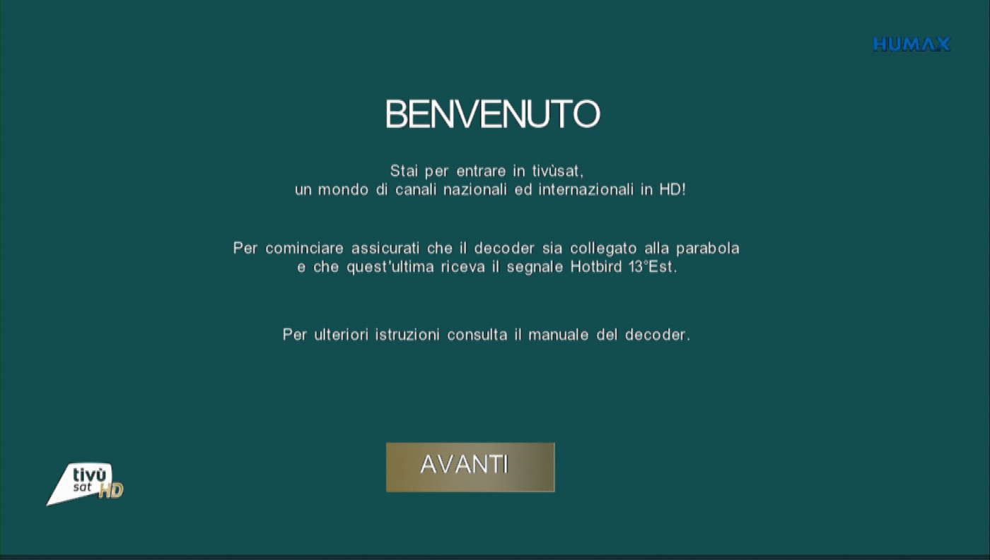 Dopo aver collegato il decoder all’alimentatore in dotazione (oppure a una linea diretta a 12Vcc di camper, caravan o barche), all’antenna parabolica, al Tv (HDMI o Scart) ed eventualmente a internet (Ethernet – solo per app connesse), compare sul teleschermo la procedura di prima installazione. Pur essendo spiegata in dettaglio nel manuale d’uso cartaceo, è particolarmente intuitiva anche per i principianti. Dopo la schermata di benvenuto, con alcune informazioni utili a completare rapidamente e con successo l’installazione, si passa alla scelta della lingua, della risoluzione HDMI (consigliato 1080p@50 per i Tv Full HD e 4K, 720p@50 per quelli HD – es.: display LCD da 1366×768 pixel), del formato schermo (automatico) e di quello audio (stereo/multicanale/Dolby).