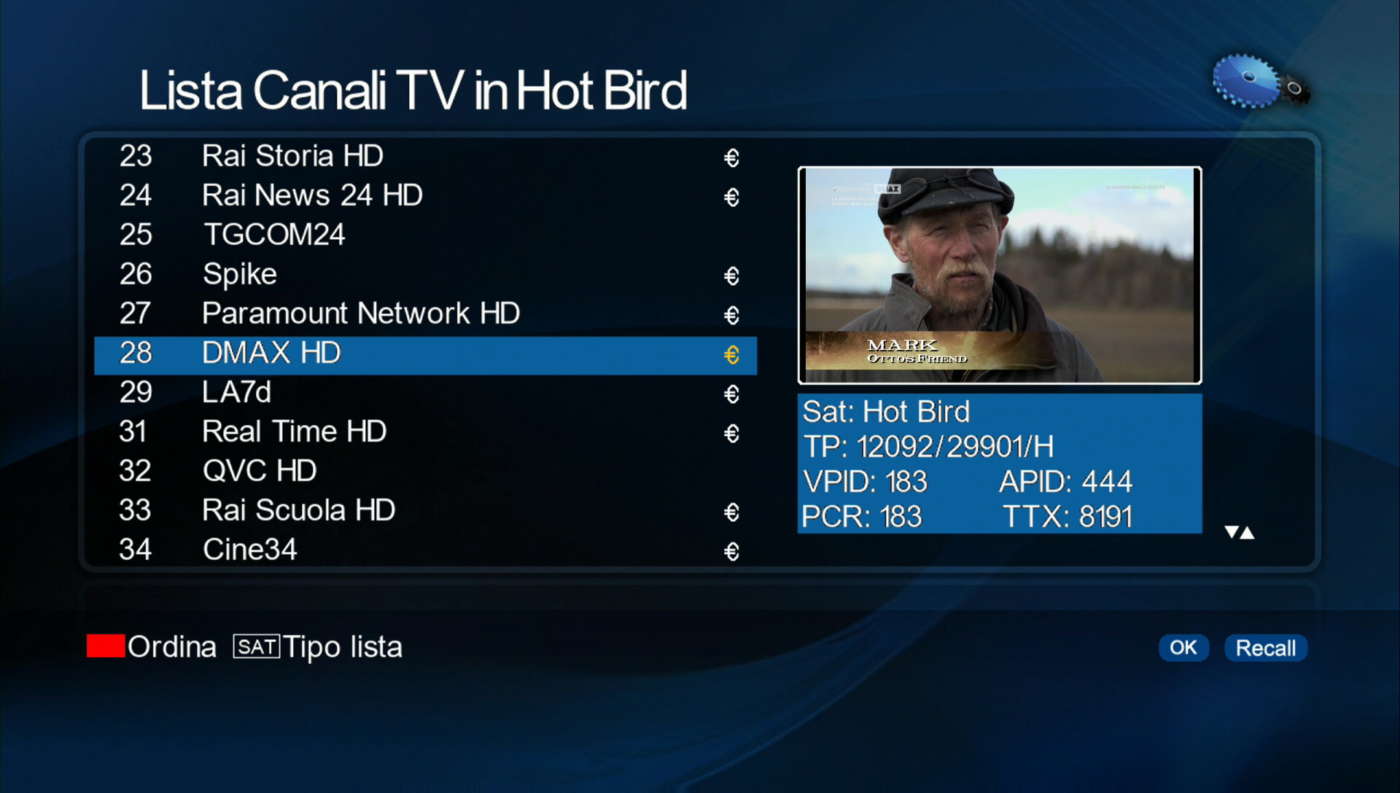 Mancano purtroppo nei nuovi Humax Tivumax gli utili filtri di ricerca per tipologia e modalità di trasmissione (come Tv e/o Radio oppure per i soli canali in chiaro). Per un utilizzo “normale” orientato all’offerta tivùsat, consigliamo di utilizzare la Ricerca TivùSat che richiede pochi minuti e permette di posizionare i canali radiotelevisivi della piattaforma nel tradizionale blocco prioritario (1-1000 con i canali HD ai primi posti – LCN Easy HD) seguiti da tutti gli altri di Hotbird e di eventuali altri satelliti (parabole Dual o Multi Feed).