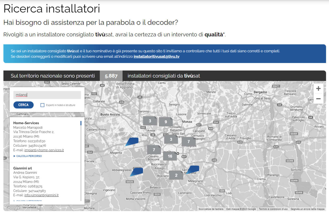 Se non siete in grado di installare la parabola da soli e preferite affidare il lavoro ad un professionista potete rivolgervi all’antennista di fiducia oppure agli installatori consigliati da tivùsat che assicurano un lavoro a regola d’arte e applicano le tariffe convenzionate e concordate con le associazioni di categoria (CNA e Confartigianato).