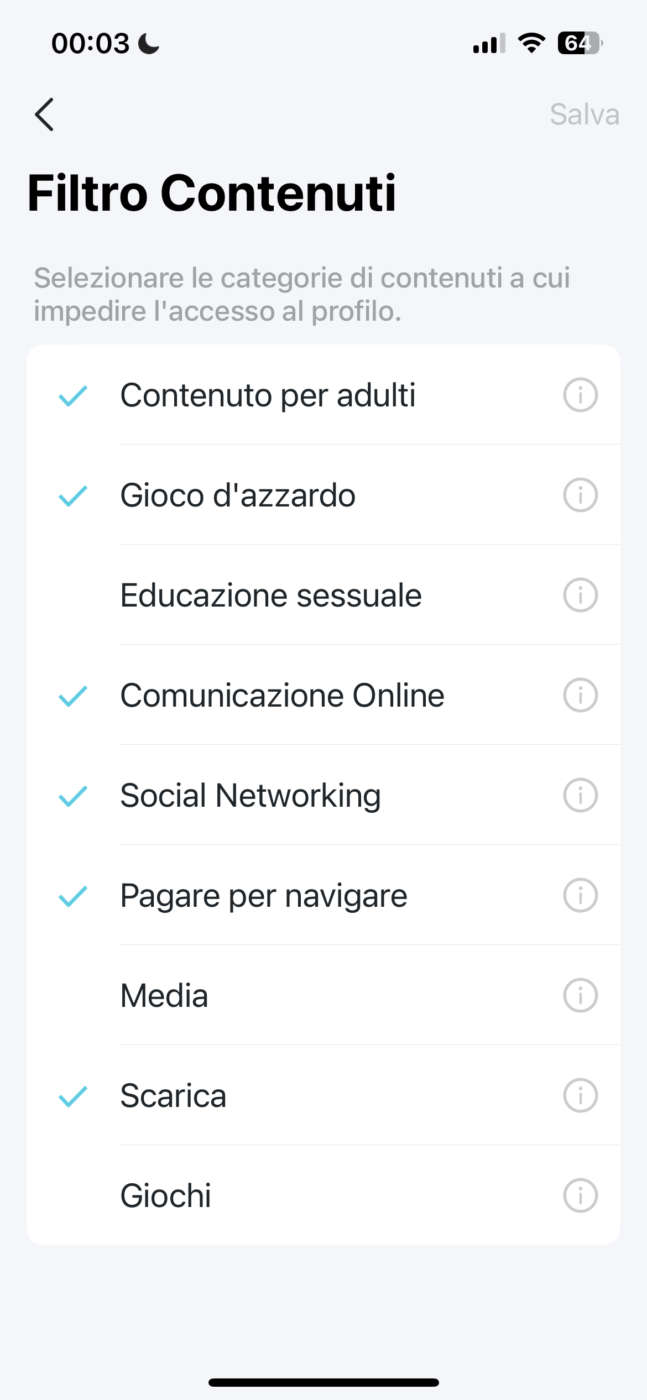 Già nella modalità base è possibile configurare più profili associati a minori, ciascuno collegato a uno o più dispositivi. Per ciascun profilo è possibile filtrare il contenuto accessibile (siti per adulti, scommesse, comunicazione, social networking, download, giochi…), bloccare siti specifici, impostare fasce giornaliere (serali/notturne per esempio) in cui inibire l’accesso. La versione avanzata abilita l’impostazione di limiti di tempo di utilizzo e una più granulare definizione delle fasce orarie di accesso.