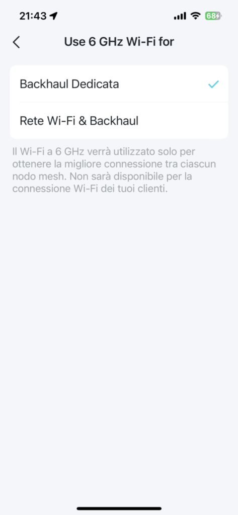 Trattandosi di un dispositivo tri-banda – 2.4 GHz, 5 GHz, 6 GHz – occorre sottolineare che non è possibile creare reti separate per le bande 2,4 e 5 GHz, ma soltanto abilitare una, l’altra o entrambe le bande. La limitazione non crea generalmente problemi, salvo nel caso sia necessario collegare dispositivi IOT in grado di utilizzare soltanto reti a 2,4 GHz. In questo caso abbiamo risolto facilmente il problema disattivando momentaneamente il 5 GHz, operazione che non richiede alcun riavvio delle unità, configurando il dispositivo IOT sulla banda 2,4 GHz e riattivando, subito dopo, entrambe le bande.