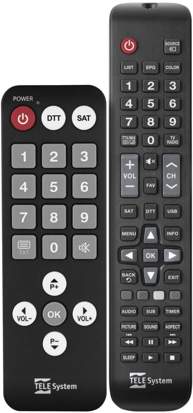 Altra dotazione utile, soprattutto per bambini e anziani, è il secondo telecomando di tipo semplificato fornito insieme ad alcuni televisori (principalmente TELE System).