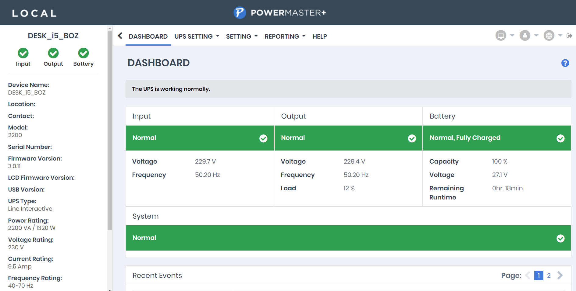 Il pannello di controllo di questi software mostra molti più parametri rispetto all’eventuale display (frequenza di rete in ingresso e uscita, calcolo costi energetici, tensione, livello di carica e tipologia batterie, ecc.) e ospita un log con gli ultimi avvenimenti (spegnimento, accensione, black-out, picchi di tensione, ecc.).