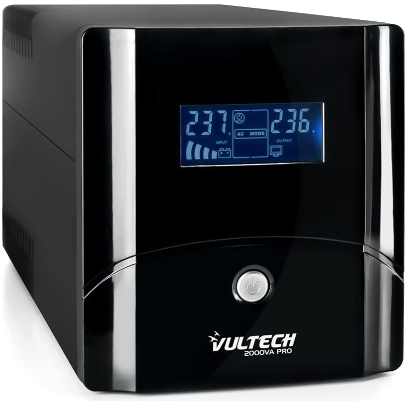La gamma PRO di Vultech comprende tre UPS “passivi” (senza ventola di raffreddamento) da 1050VA, 1500VA e 2000VA con display LCD retroilluminato (tensione in/out, carico, livello batteria, ecc.), una uscita IEC e quattro Schuko “bipasso” compatibili con le tradizionali spine italiane a tre poli da 10A/16A (due Schuko per il modello da 1050VA).