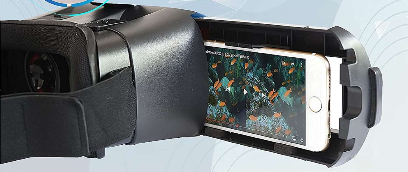 FIYAPOO VR – 27,99 euro. Compatibile per smartphone Android e Apple da 4,7” a 6,53” con jack audio 3,5 mm . Dotato di cuffie stereo con un buon isolamento acustico e bassi che consentono di distinguere la posizione in base al suono. Sopra ci sono le rotelle per regolare la distanza delle lenti dallo schermo, sotto i tasti per il volume e controllo del telefono. Caratteristiche principali: regolazione PD & OD, Angolo di visione di 100°, Auricolari stereo HiFi, cinghie e cuffie regolabili a forma di T.