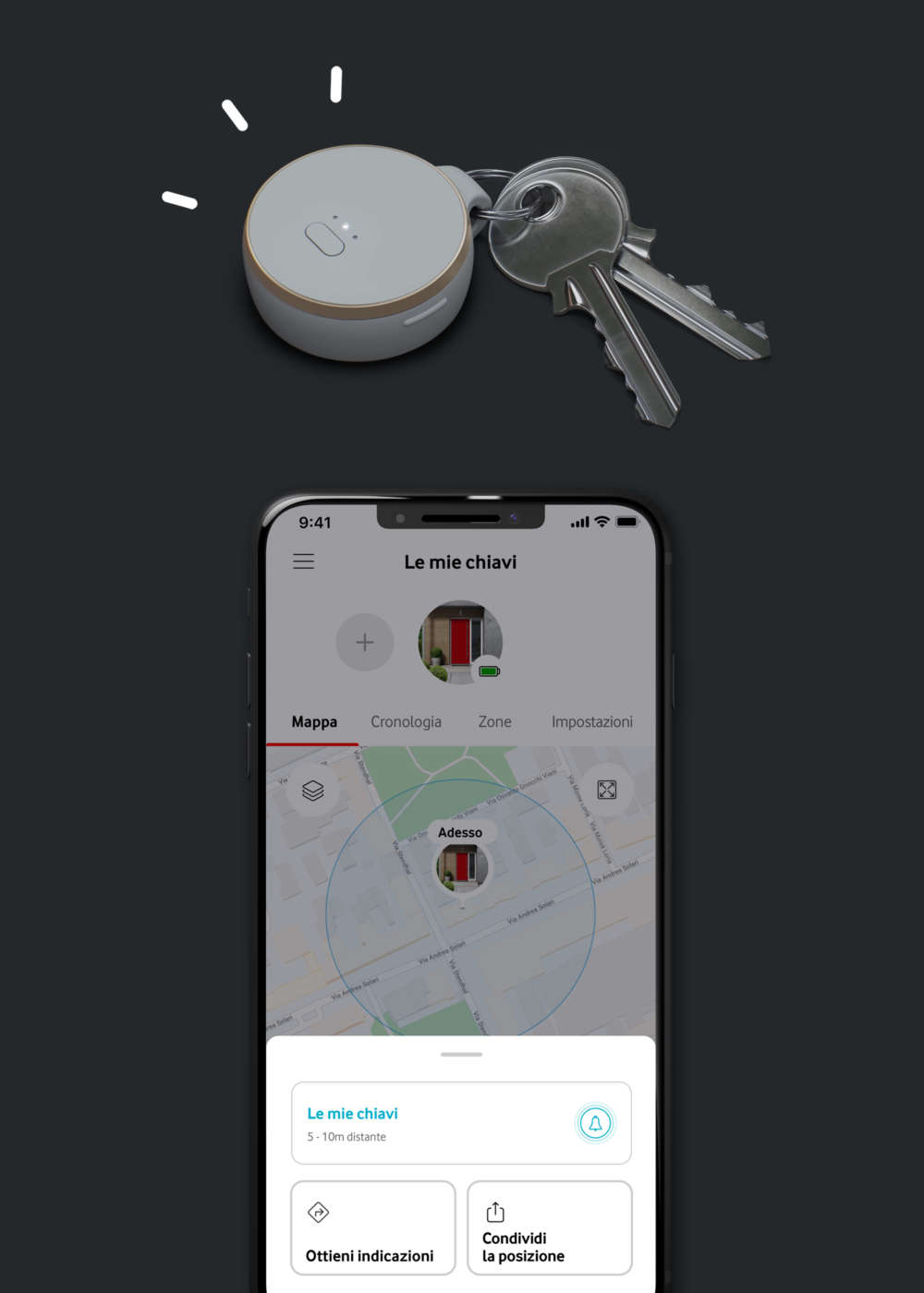 Le nuove funzionalità Ottieni indicazioni & Condividi la posizione consentono di condividere la posizione di Curve con i propri contatti e seguire le indicazioni per raggiungerla tramite l’app di navigazione scelta. Infine, Multiutente & Condivisione dispositivo – disponibile a partire dalle prossime settimane – permetterà di aggiungere fino a nove utenti ospiti nella Vodafone Smart App, ottima ad esempio per i proprietari di cani o per un gruppo di persone che deve monitorare lo stesso oggetto, ad esempio la macchina di famiglia.