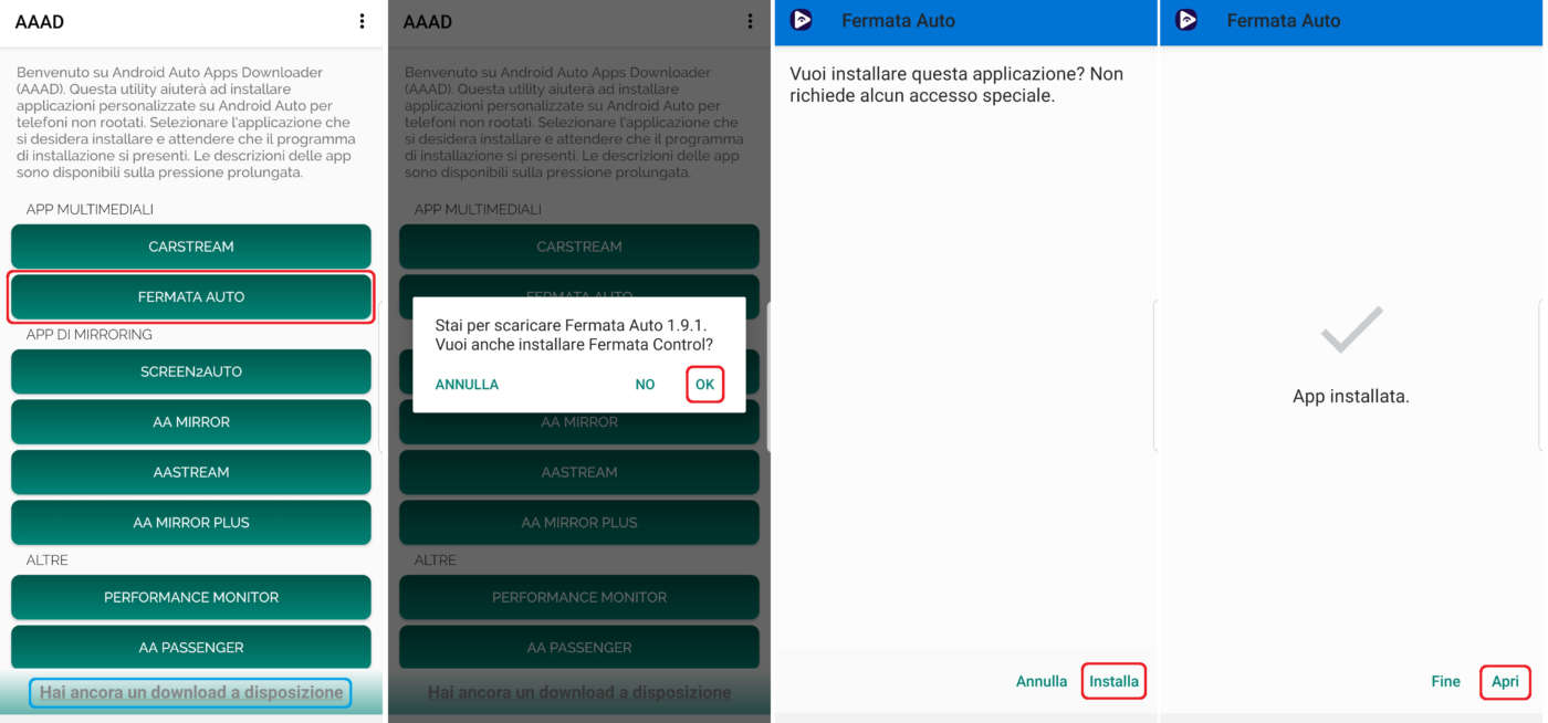 Se AAAD non risponde o si blocca scaricate le app Fermata Auto e Control da qui e procedete con l’installazione manuale (stessa procedura dell’apk di AAAD vista sopra).