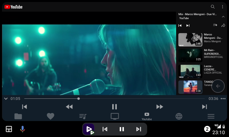 Cliccate su Fermata Auto e dalla barra menu in basso cliccate su YouTube.